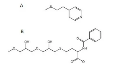 Fig. 3. Structures of A) mercapto-ethyl-pyridine (4-MEP) a strong anion exchanger and B) Nbenzoyl-homocysteine (Capto MMC) a weak cation exchanger.