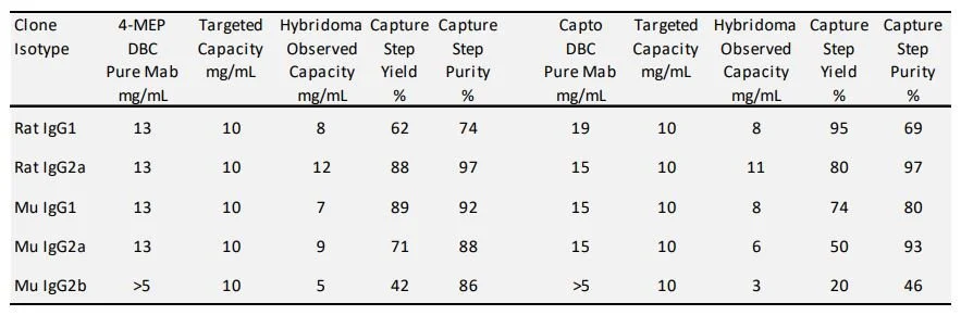 Table 2 Capture step hybridoma production media on 4-MEP and Capto MMC.