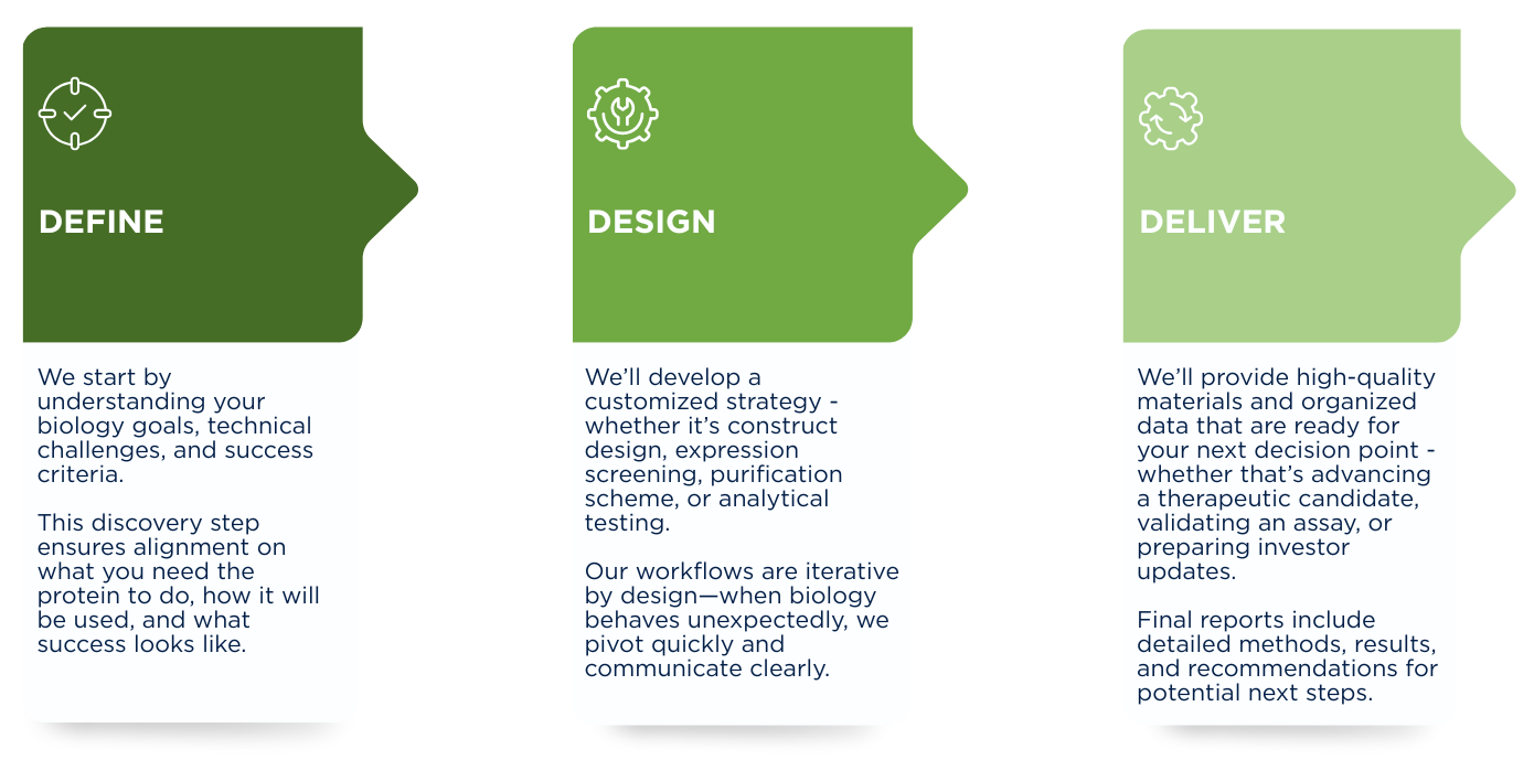 You work directly with a senior protein scientist—not layers of project managers. Every scope, decision, and result stays connected to your goals.